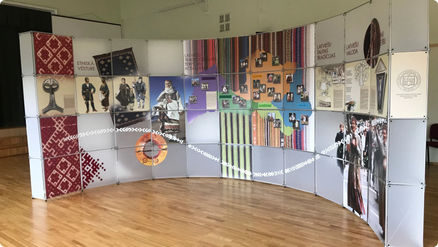Izstādē koncentrēti atspoguļota latviešu tautas etniskā vēsture, tās tradīcijas un tradicionālais apģērbs, Latvijas valsts vēsture un ģeogrāfija.