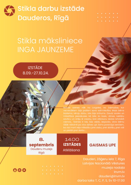 Izstādei Dauderos atlasīti Čehijā un Rumānijā, kā arī Latvijā veidoti stikla darbi ar personisku saturu, kas nolasāms jau nosaukumos: “Vecāsmātes tautasdziesma”, “Strauja, strauja upe tecēj’”, “Leduspuķes noslēpums”, “Ziemassvētku sniegpārsliņa”, pašportrets “Rudens vējā”, “Laimes putns”, “Spēka vieta”, “Labā un ļaunā ābols”, “Atmiņas par Baltijas jūras šļakatām”, “Lūpas” u.c.